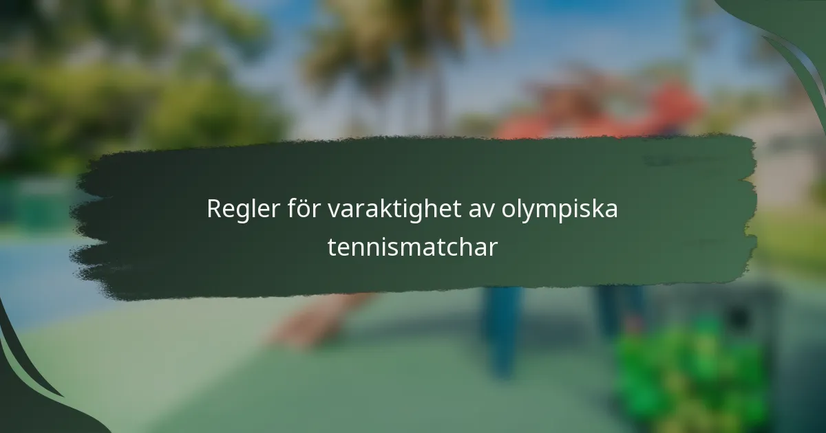 Den olympiska tennismatchens varaktighet påverkas av formatet, där singelmatcher vanligtvis varar längre än dubbelmatcher. Sedan återintroduktionen 1988 har olika regeljusteringar och spelarnas erfarenheter format hur länge matcher kan pågå, vilket påverkar både strategier och tittarengagemang. Att förstå dessa varaktighetsregler är avgörande för både spelare och åskådare för att förbättra den övergripande upplevelsen av evenemanget.