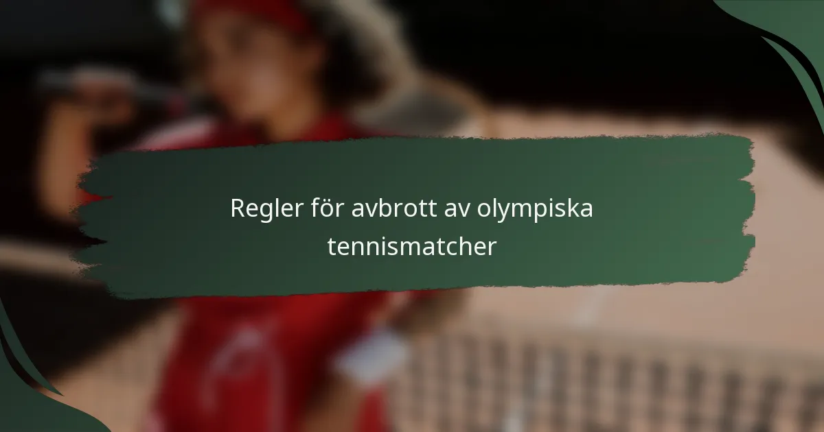 Reglerna för avbrott i olympiska tennismatchar beskriver de villkor under vilka spelet kan pausas, vilket säkerställer rättvisa och tävlingens integritet. Dessa regler skiljer sig från de som gäller i Grand Slam- och ATP/WTA-turneringar, och erbjuder större flexibilitet samt tar hänsyn till unika faktorer som väder och publikengagemang. Avbrott kan uppstå av olika skäl, vilket påverkar både matchdynamiken och upplevelserna för spelare och åskådare.