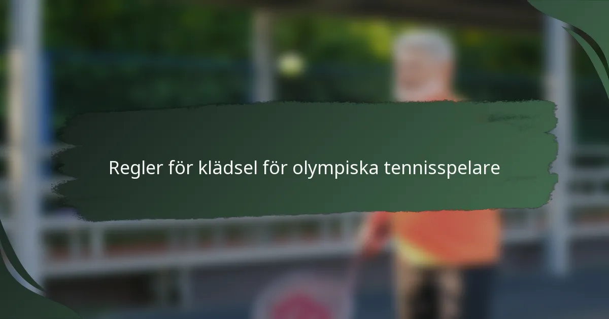 Olympiska tennisspelare måste följa specifika klädkoder som fastställts av International Tennis Federation (ITF) för att säkerställa enhetlighet och professionalism på banan. Dessa regler omfattar uniformfärger, logoplatsering, sponsringsbegränsningar och förbjudna föremål, med efterlevnadskontroller som genomförs under tävlingar.