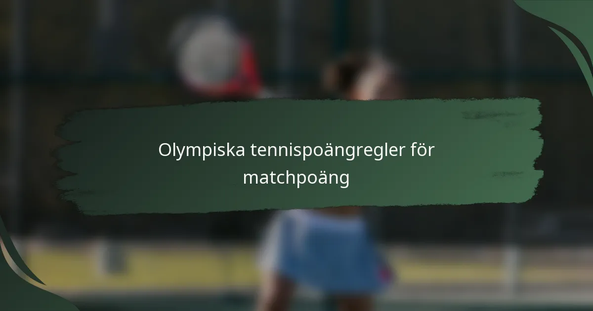 I olympiska tennismatcher följer poängreglerna det traditionella tennismönstret, som omfattar game, set och matcher. Spelarna måste vinna ett specifikt antal set för att säkra segern, med unika poängnyanser och tiebreak-regler som gäller i vissa situationer.